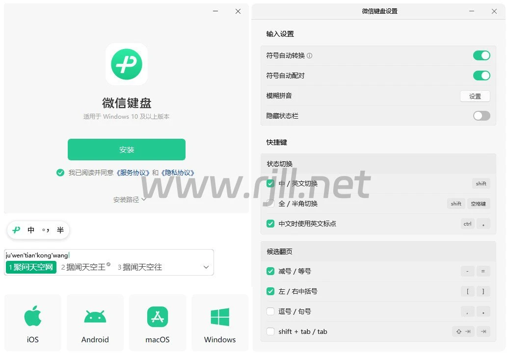 快速输入设置:支持等待选择快速翻页、模糊拼音、符号转换等功能,让你的输入更快、更准,满足你的个性化输入需求。