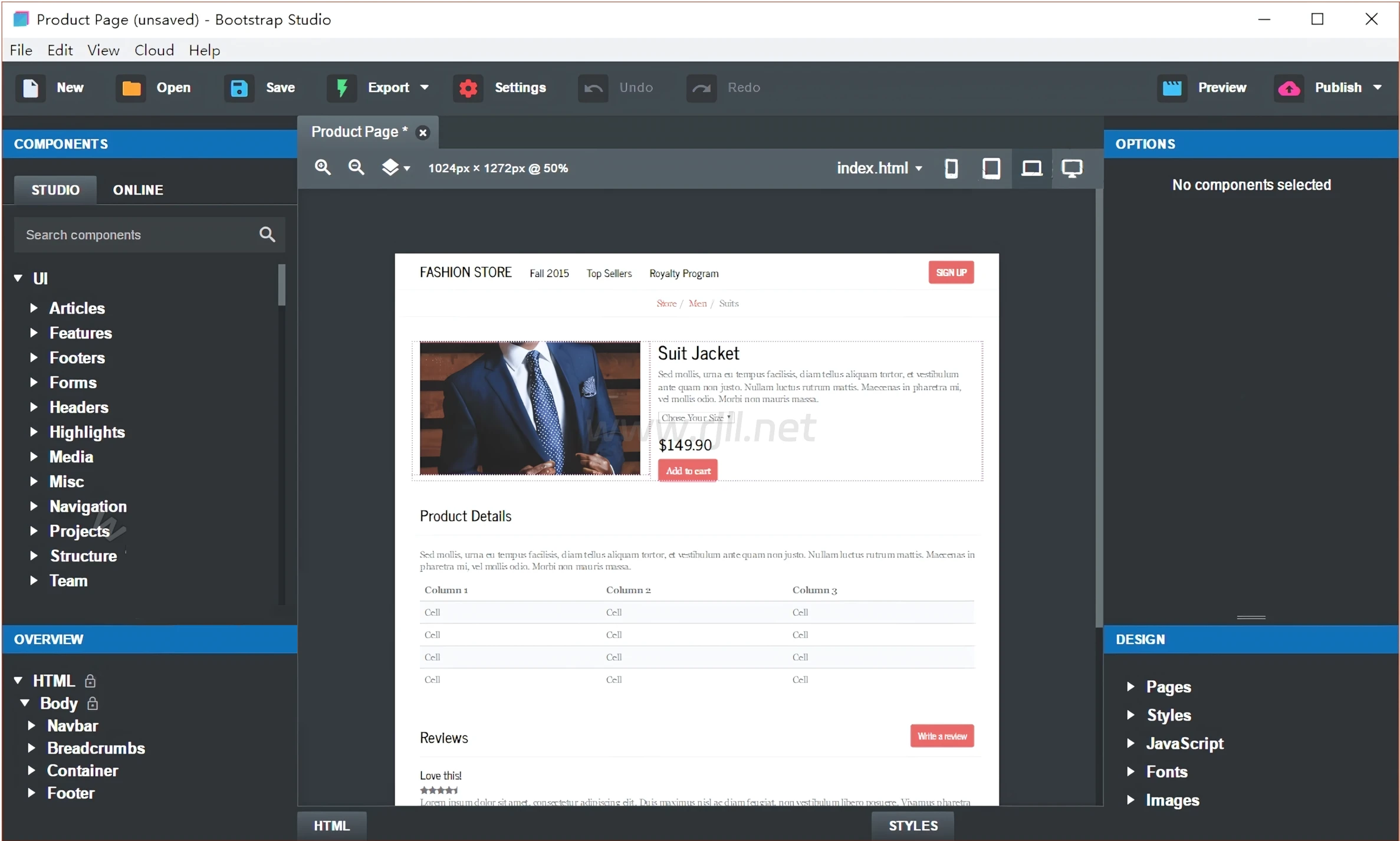 直观易用:Bootstrap Studio 提供了一个直观的用户界面,使用户可以轻松地拖放组件、编辑属性和样式,并通过预览功能查看实时效果。