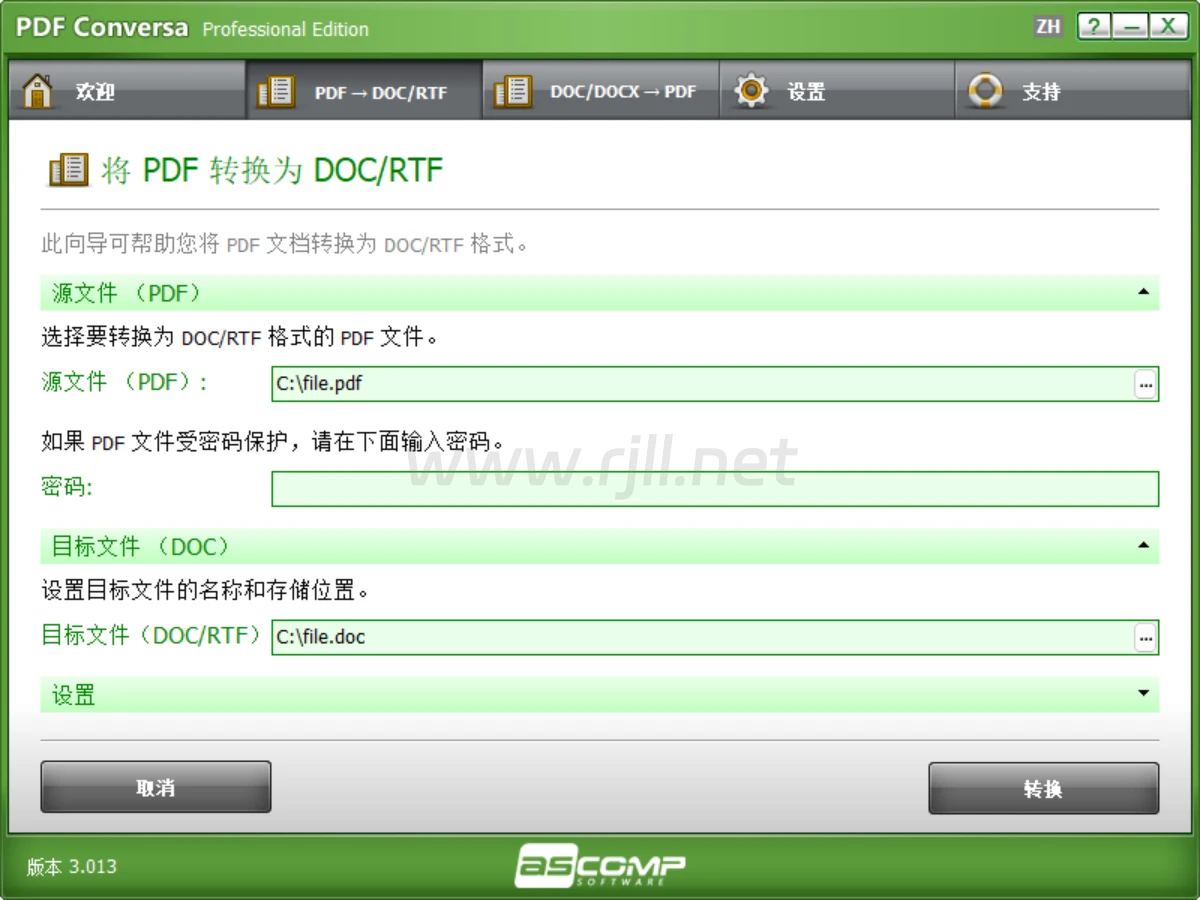 PDF 转换成Word 文档:ASCOMP PDF Conversa 能够快速并且准确地将PDF 文件转换成可编辑的Word 文档,帮助用户方便地修改和编辑PDF 内容。