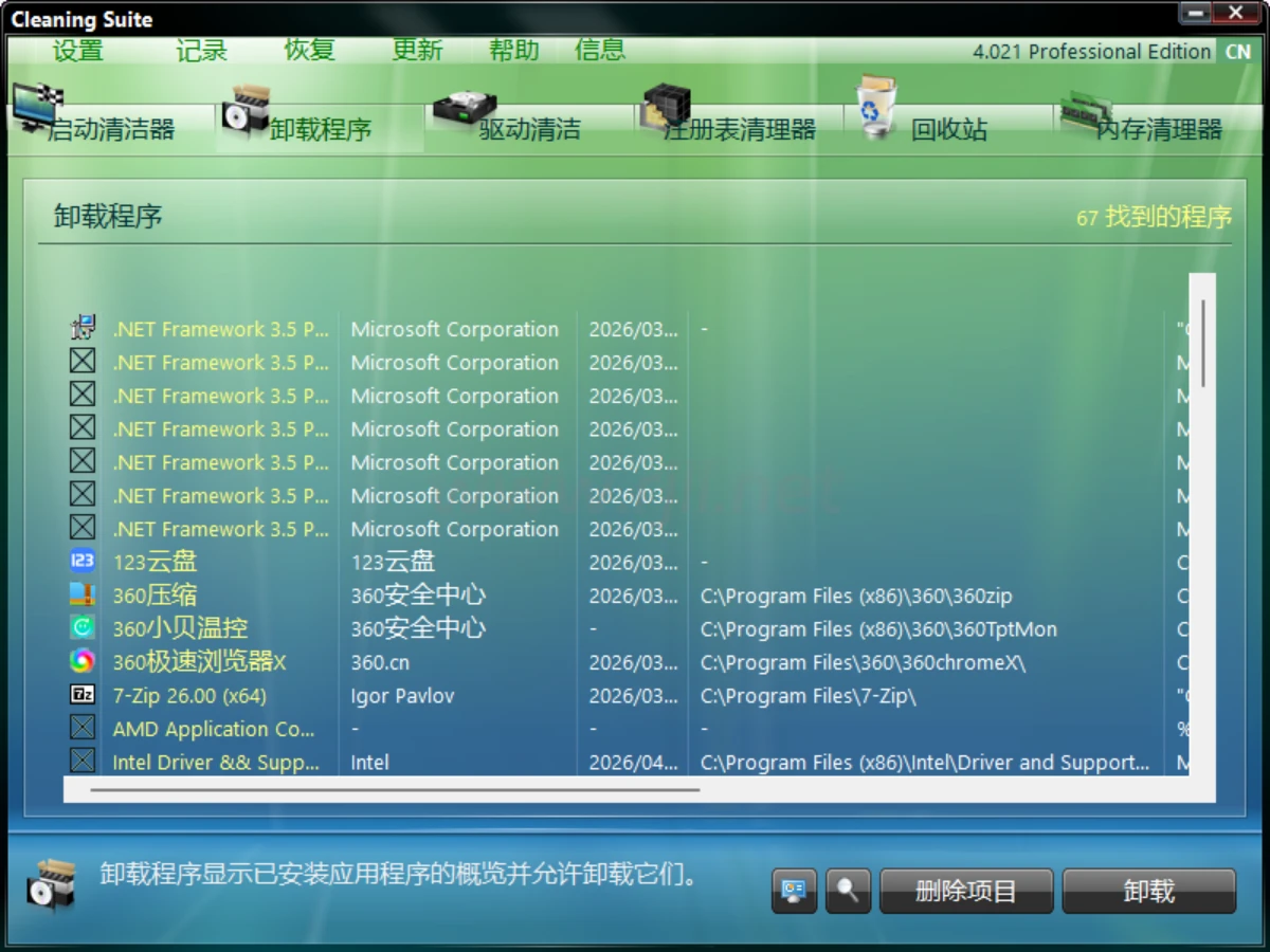 系统清理:可以扫描和删除计算机上的临时文件、缓存文件、无用的注册表项和其他垃圾文件,以释放磁盘空间并提高系统性能。