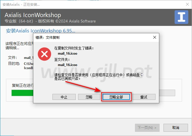 安装过程中如出现错误,请点击忽略全部,疑似官方 BUG 。