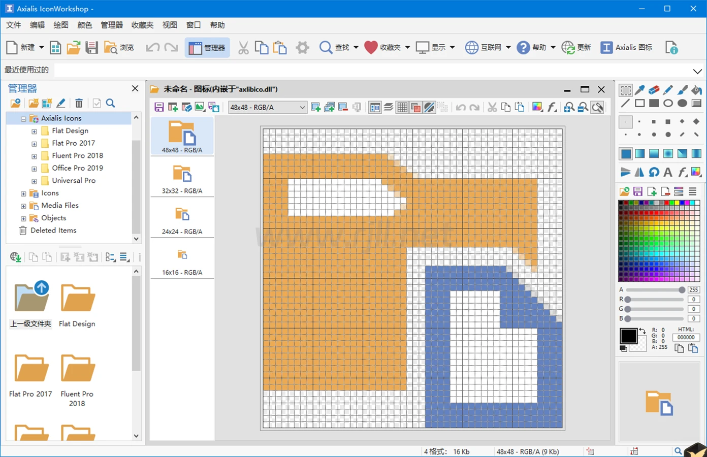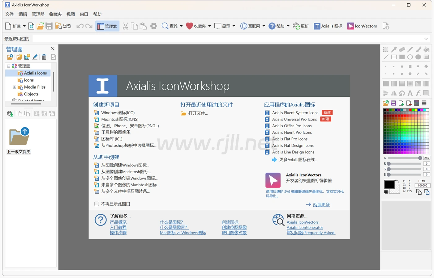 Axialis IconWorkshop是一款功能强大的图标制作工具,它可以为不同的操作系统创建图标,如Windows,MacOS和Unix等,为Vista/7系统创建256×256的Windows图标,为OSX Lion系统创建1024×1024的Macintosh图标以及为Unix/Linux系统创建PNG格式图标。该软件内置了很多滤镜(模糊、平滑、锐化、细节、等高线、浮雕等)和图像调整器(色调、饱和度、亮度、对比度等)以及其它工具(缩放尺寸、任意角度转动、翻转、XP 阴影等)。更是增强的与Adobe(R) 和 Jasc(R) 色彩文件相兼容的色板和调色板管理系统。通过Axialis IconWorkshop,你能创建、导入和保存所有的Windows (R) 图标(ICO)和图标库(ICL)。同时软件还可让用户很容易地编辑包含在解决方案中的图标,用户只需在Visual Studio的资源编辑器中打开图标,启动相关的插件命令,该图标将自动在软件中打开,可在需要时对其进行编辑,当图标在软件中被保存后,VS IDE将自动刷新该图标文件,包括利用现有的Windows和Mac图标创建PNG图标。除此之外,软件还拥有更强大的编辑器,支持从现有的图像来直接创建图标,并更为简单,用户可以导入各种格式图片,自动生成图标,如PSD、PNG、BMP、JPEG、GIF、JPEG2000等等。