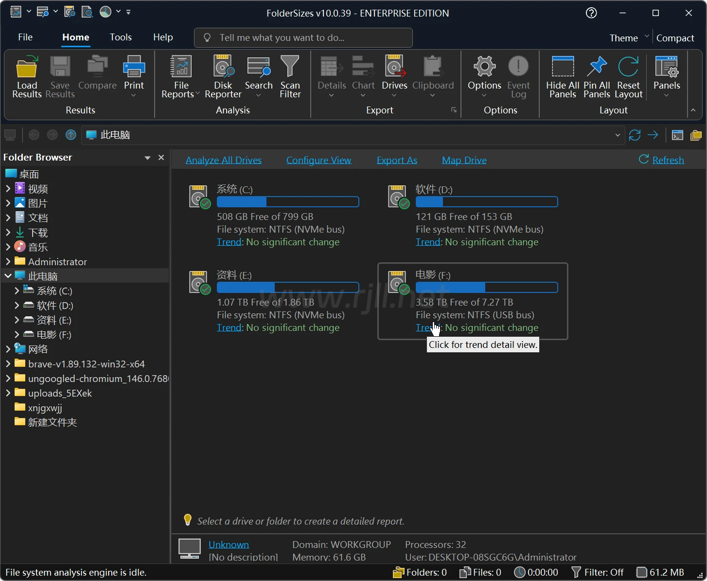 • FolderSizes(磁盘空间分析软件) v10.0.39 便携版