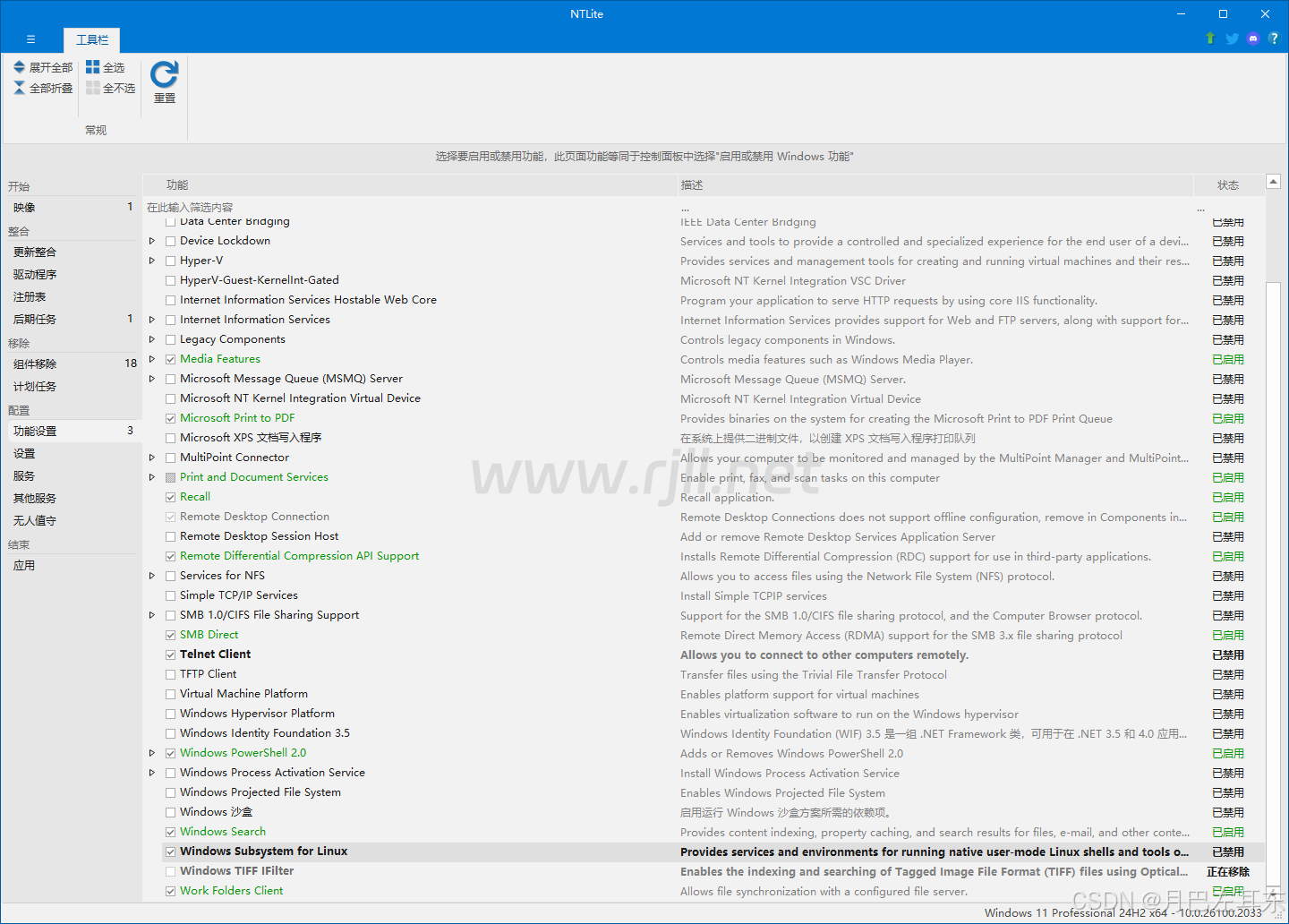 1. 可以删除Windows中不需要的组件,如语言包、驱动程序、服务、程序等。