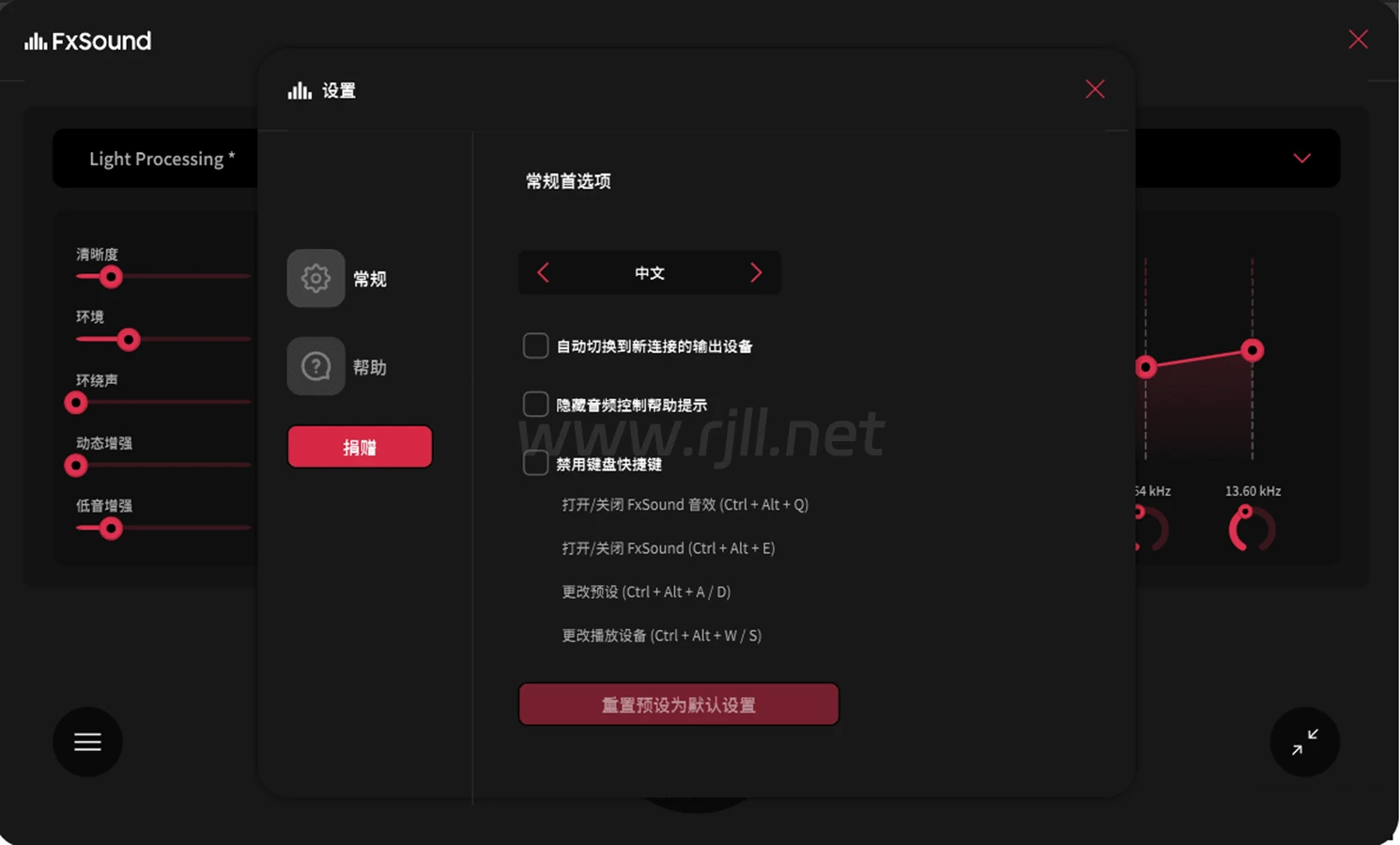 5. 一键还原默认设置:FxSound可以一键还原用户的音频设备默认设置,方便用户恢复设置。