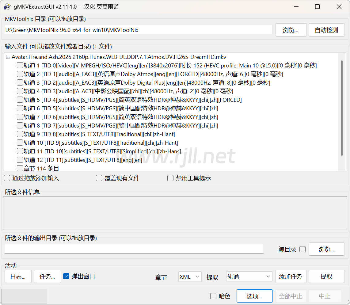 只能抽取MKV格式的视频 字幕 视频 音频都行