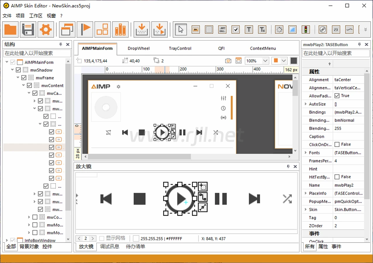 1. 支持创建和编辑AIMP皮肤。