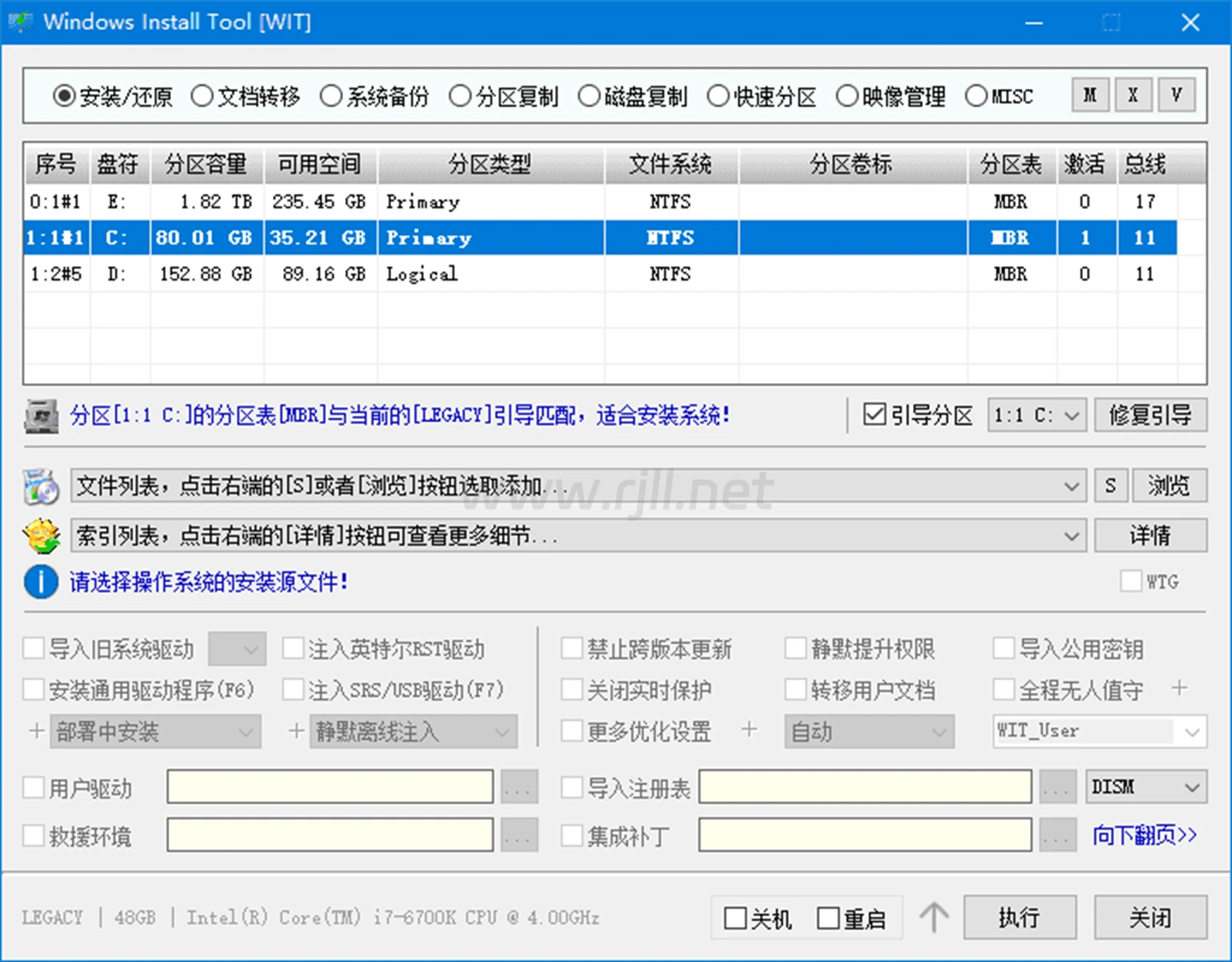 1. 系统安装,支持ESD、WIM、SWM、GHO、.SNA、.TBI。