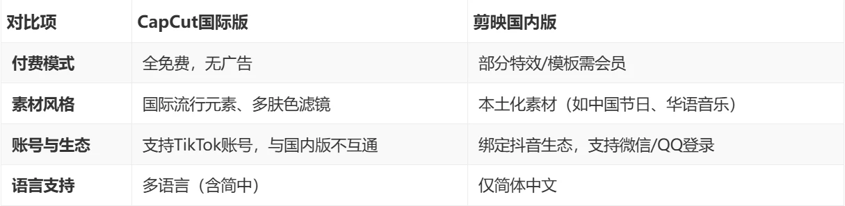 与国内剪映的核心差异