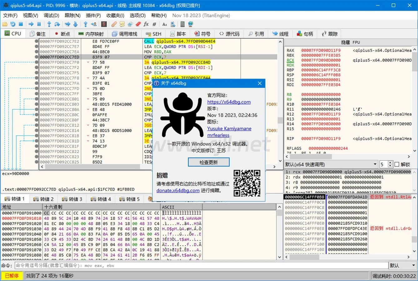 x64dbg简体中文版:王苏,2024年12月更新修订