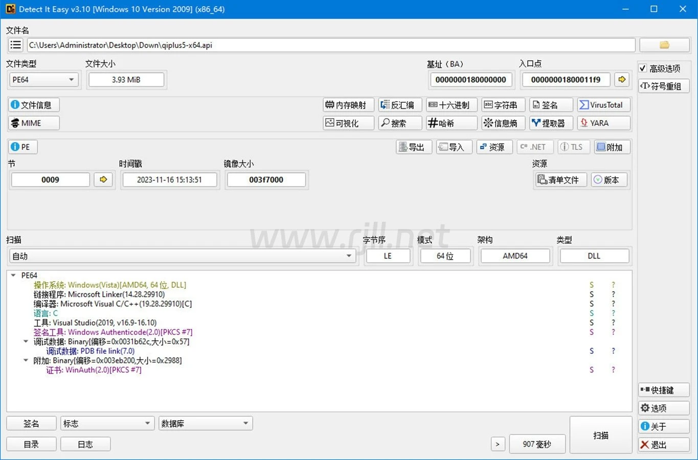 总体上,Detect It Easy是一个功能强大的文件识别工具,旨在帮助用户轻松地获取关于所需文件的有用信息。