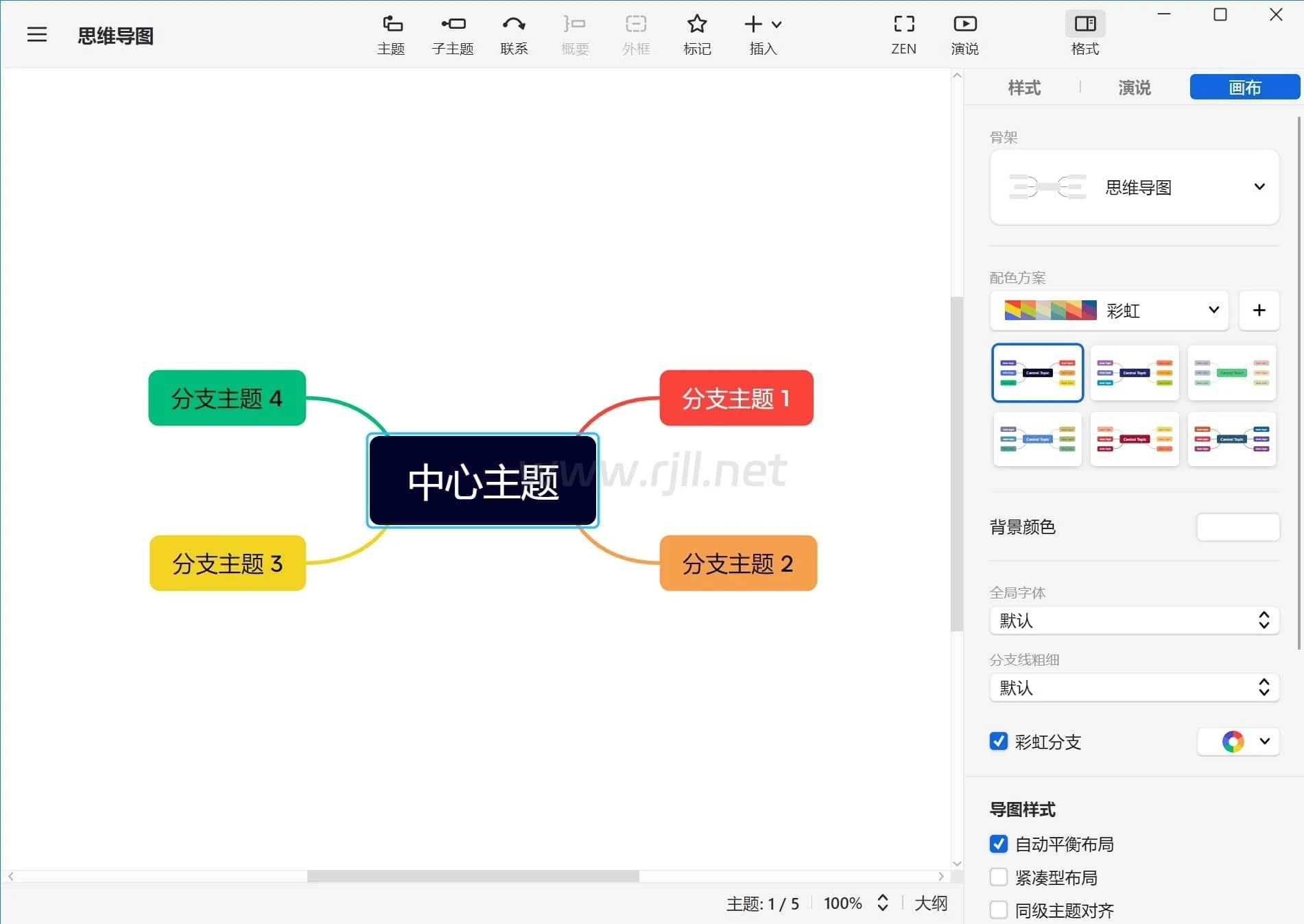 ZEN 专注模式 ZEN 模式专注于导图本身,沉浸化编辑样式、插入标记、使用快捷键等常用操作