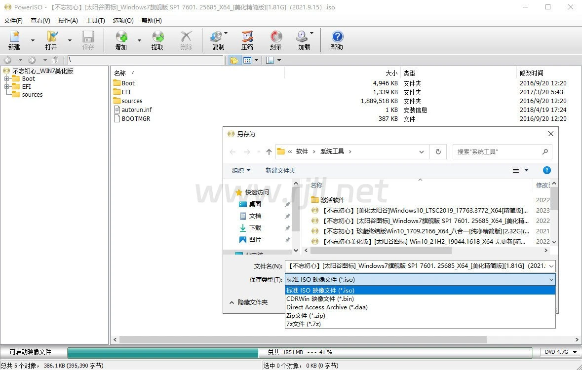 在 ISO / BIN 和其他格式之间转换图像文件。PowerISO 不仅可以将 BIN 转换为 ISO,还可以将几乎所有的图像文件格式转换为标准的 ISO 图像文件。