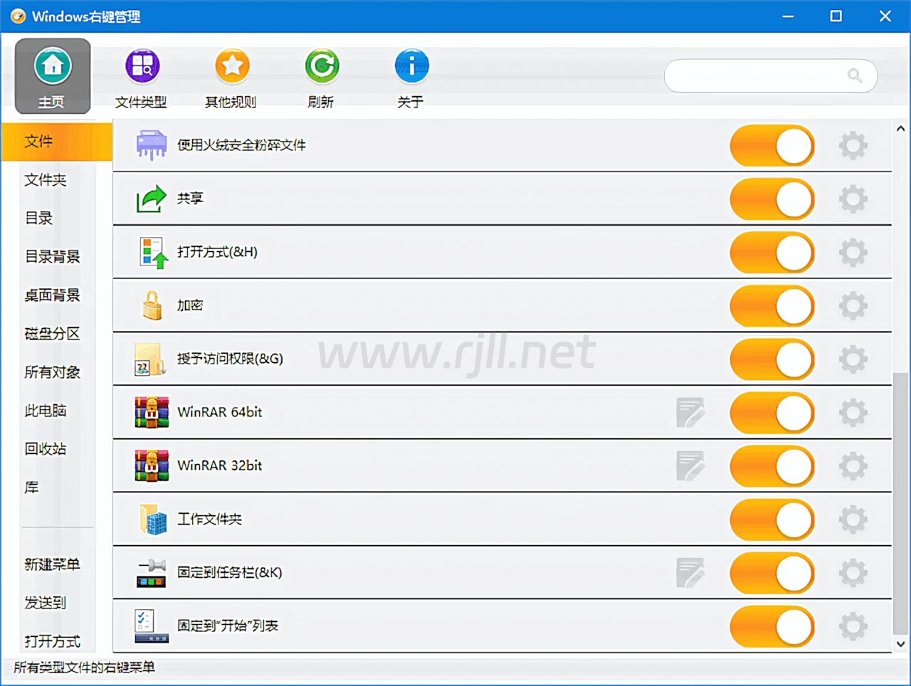 启用或禁用文件、文件夹、新建、发送到、打开方式、自定义文件格式等右键菜单项目