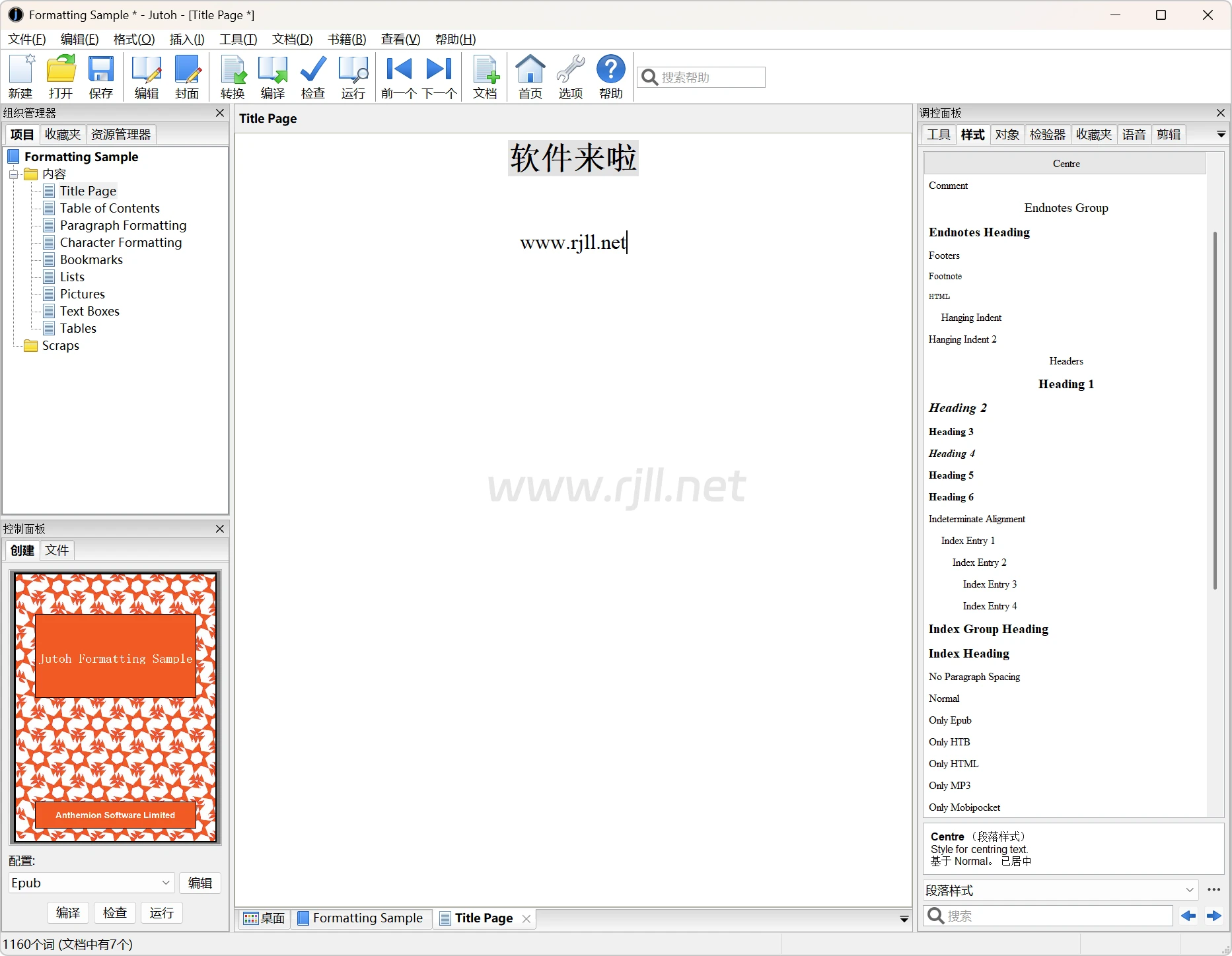样式和格式化:Jutoh提供了丰富的样式和格式化选项,使用户能够轻松自定义电子书的外观和布局。用户可以设置字体、段落格式、页眉页脚、标题样式等。
